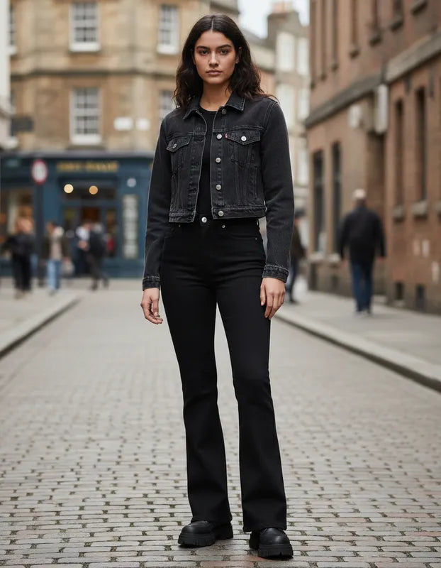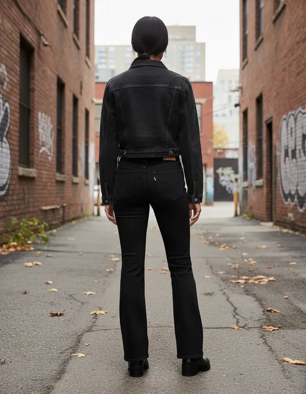 Calça feminina Levi's, modelo 726 slim barra flare na cor preto com cós alto.