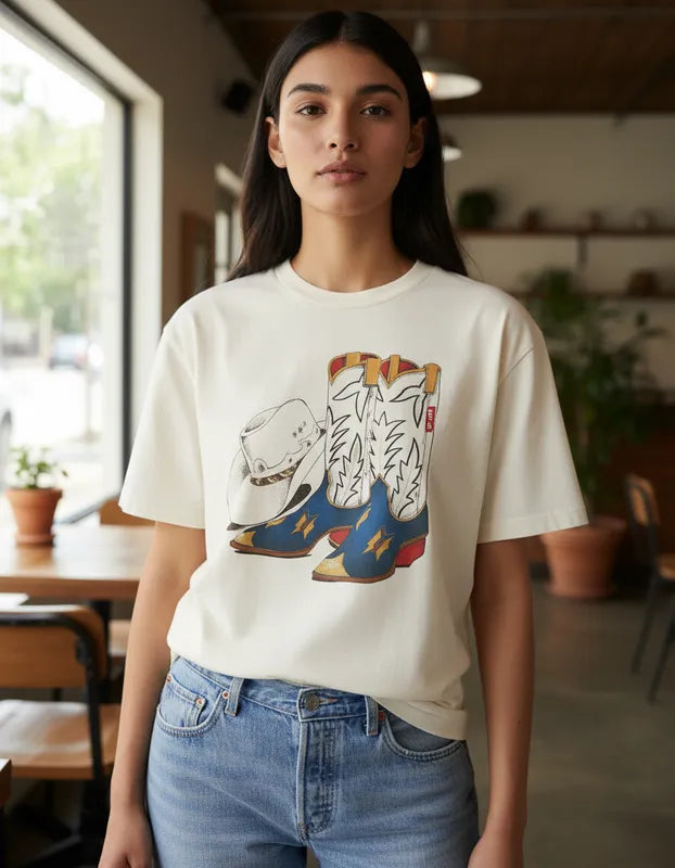 A Camiseta Feminina Levi’s® Botas traz um visual descontraído e cheio de personalidade, perfeita para quem gosta de estilo casual com toque western. Confeccionada em malha leve e macia, a peça oferece conforto para o dia a dia e um caimento solto que combina com diferentes estilos de jeans, shorts ou saias.