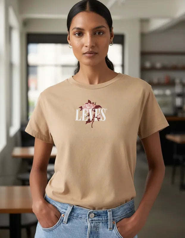 Descrição do Produto – Camiseta Feminina Boxy Bege Levi’s®
