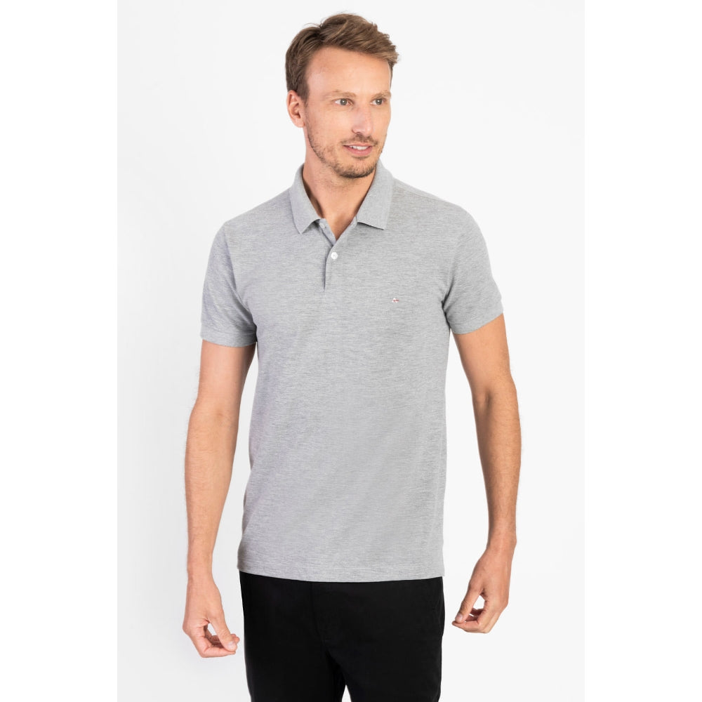 A polo é confeccionada em malha piquet com modelagem reta. A peça possui gola colarinho com abotoamento, mangas curtas, detalhe com o logo da marca bordado na altura do peito e acabamentos em malha canelada.
