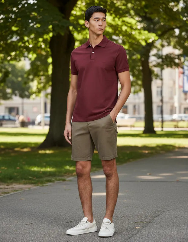 A polo é confeccionada em piquet de algodão com modelagem regular.