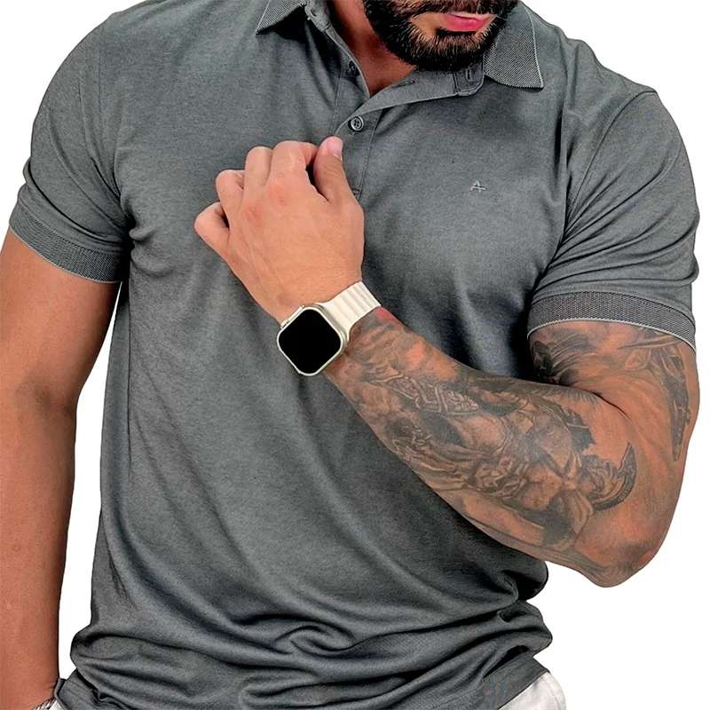 A polo é confeccionada em uma combinação de poliéster e algodão, tecido tecnológico, modelagem regular.
