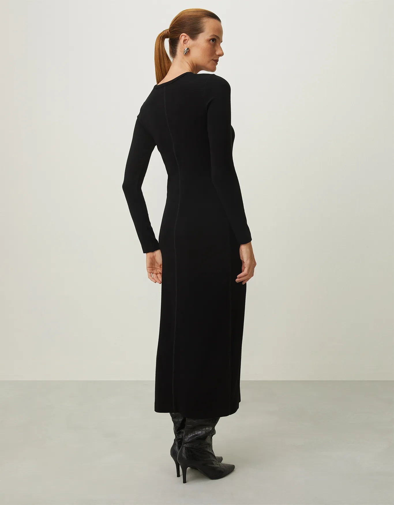 Elegância e conforto em uma única peça! O Vestido Shoulder em malha é perfeito para looks sofisticados do dia a dia. Com manga longa, decote redondo e silhueta alongada, este vestido preto é versátil e fácil de combinar.